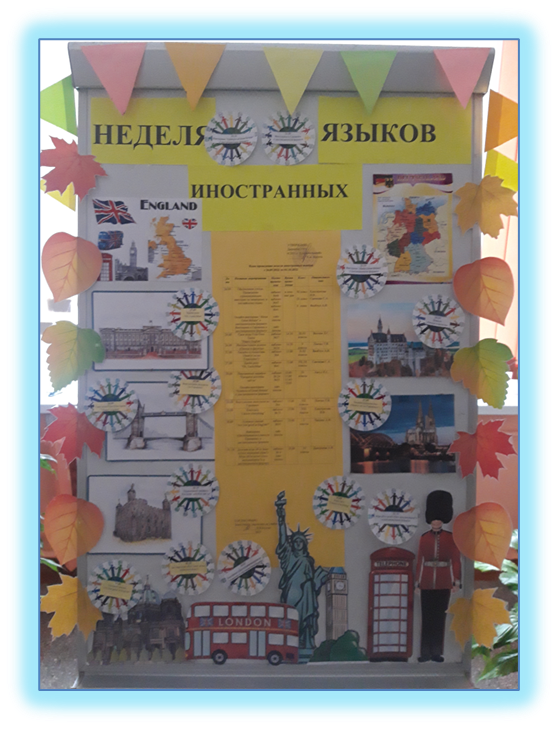 В рамках недели в Матвеевской средней школе прошли следующие мероприятия: торжественное открытие и закрытие недели с подведением итогов, акция «Sweet Magic Box», путешествие в «Страну английского языка», выставка «Известные полиглоты мира», заочная экскурсия «Belarus is my Motherland», игра-путешествие «В гости к королю Британии», викторина «Англоговорящие страны», конференция «Интересные факты о языках Европейских стран». Ребята особый интерес проявили к разгадыванию кроссвордов, ребусов, к рисованию флагов европейских стран, к участию в конкурсах между группами учащихся и др.. Учащиеся, которые были самыми активными и показали знания высокого уровня, награждены дипломами победителей, а также хорошими отметками по предмету.